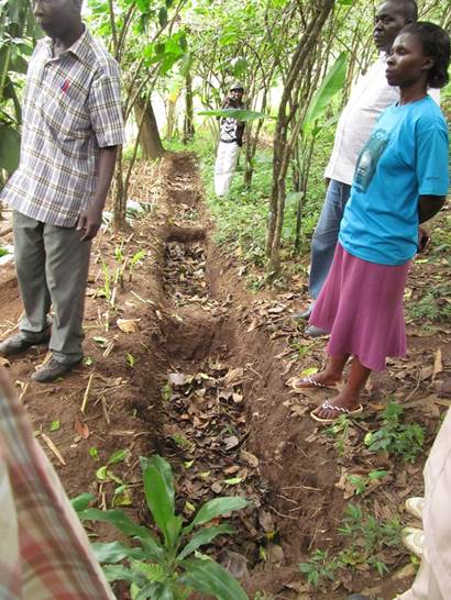 After lunch we drove back to our modest lodging of two nights previously in Mbale, to await a communication from an NGO I’m supervising with projects in the area. The idea was the project manager would take me to verify completion of some activities they’d contracted to do. Next day we drove to two sites; one a 10km ditch on the plain to drain an area perennially waterlogged by runoff from Mt. Elgon and the other a gorgeous Shangri La valley deep in the folds of Mt. Elgon where they’d dug trenches aligned with the contours on the steep hillsides, among the coffee bushes. The idea is that the trenches conserve rain runoff, and they put manure in them to leach nutrients to the coffee bushes. Sounds reasonable.